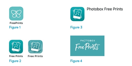 Already an established business, Photobox launched its own free photo-printing service app in April 2019 called “Photobox Free Prints” in order to compete with PlanetArt. Like all apps, it too had app icons (see above, figure 2) an app store icon (see above, figure 3) and a stylised mark for other marketing purposes (see above, figure 4).